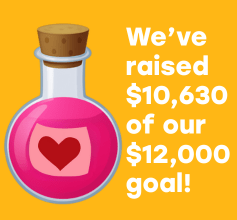 Our Elixir of Love bottle is starting to fill — we’ve raised $10,630 toward our $12,000 goal.